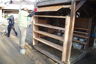 それと並行してお父さんたちは非常階段下のお店スペースの改修を行ってくれました。今まではとりあえず木のシンクが置いてあっただけなのですが、