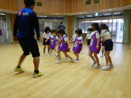 そして、準備運動を始めます。つながるーむを走り回ったり、友だちと足じゃんけんをしたり楽しく体を動かしていきました。