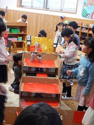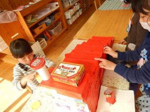 年長さんではまずはひな壇づくりから。とっても立派な物が出来ています。