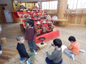 さて、そんな幼稚園ではお雛様を飾り始めて早2週間。ちょっと早い飾り始めてでしたがこれには理由があります。