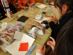 必要なもの、使いたいものがある場合は先生に相談したり、アトリエに見に行ったり。いろいろな物を工夫して使って、クラスごとに個性的なお雛様を作っています。さぁほんとうの「きょうは たのしい ひなまつり~♪」まであと2日。またどんなお雛様が出揃うかご報告したいと思いますのでお楽しみに~!
