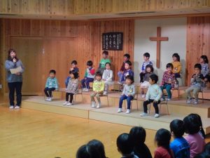今日の誕生会で今年度は最後。本当に一年が過ぎるのはとっても早いですね。この一年、成長させてくださったこと、友だちや先生と楽しくすごせたことを神様に感謝しながら、来年への期待も大きくして行きたいものです。