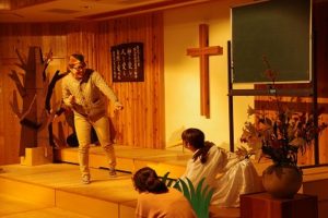 お待たせしました!!4月からずっと待っていたね。やっと3月産まれのお友だちの誕生会がやってきました。今日は17人のお友だちの誕生日をお祝いしました。いつものようにまずは礼拝をしました。