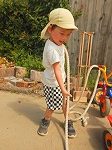 引っ張って動かす中、友だちの背中を押して協力する子や鉄棒自体を押して動かそうとする子。いろいろな手段を考えて大きな鉄棒を動かすことが出来ました。