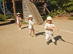 みんなで力を合わせて引っ張り合い!子どもたちの外遊びは無限に広がります。これからも様々な外遊びを楽しんでいきたいです!