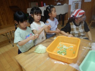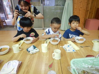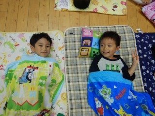 帰る時には「おやつのゼリーもっとたべたい!」「きょうもおとまりしたーい!」「たのしかった!」ととても表情が輝いている子どもたちでした。