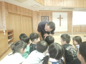 そして、久しぶりのツリー礼拝!ワクワクした表情や、ドキドキした表情を見せながら「おいのりのきもちでいくよね!」と礼拝に向かう子どもたちでした。