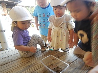 秋の気配が漂い始める季節になりました。園庭では秋の植物や生き物で溢れています♪ そんな中で…! ”カタツムリ” を見つけた子どもたち!! 動く様子を暫く観察したり、話しかけてみたりと、それぞれの楽しみ方がありました。 嬉しさのあまり、このような表情♡(うふふふ) みんなも「なになに~?」と興味深々です! 最終的に……脱走には要注意です……。。 (おまけ)まだまだ秋を堪能するぞ~~♡! WEB拍手3Tweet
