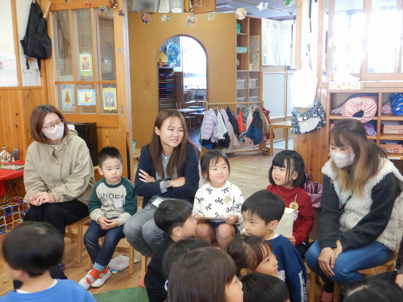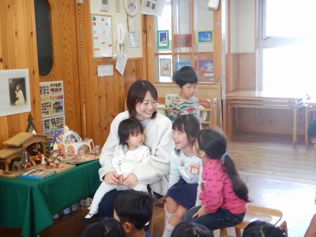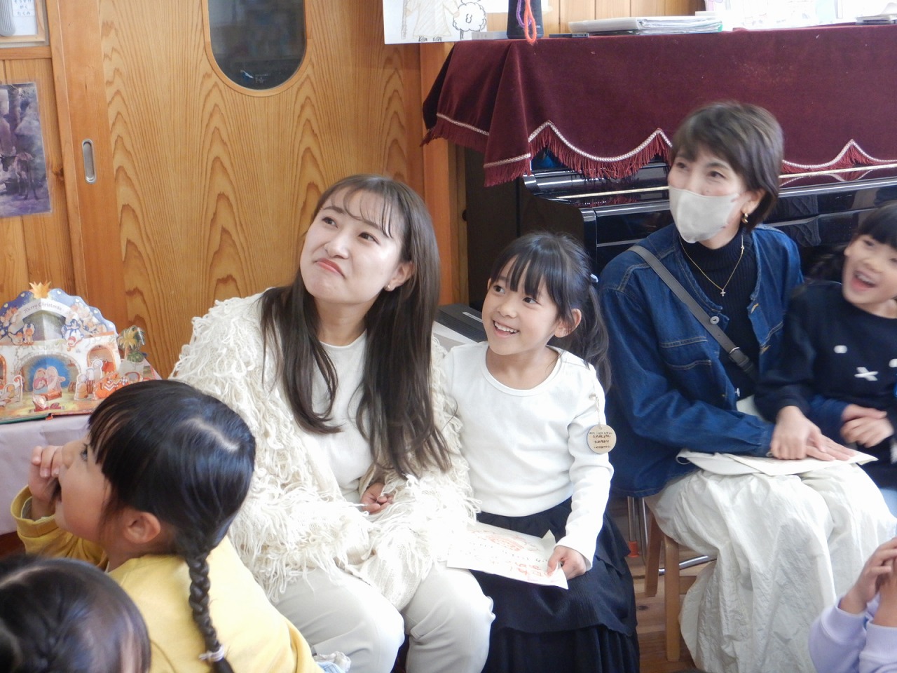 先生たちからもお楽しみのプレゼントが!クリスマスのお話をしてくれました。お星さまや宿屋さん、羊飼い…知っている歌が聞こえると、一緒に歌い ながら楽しみました☆