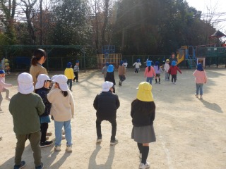 体操が終わって体が温まったところで警察と泥棒に分かれて~!!