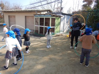 地域の園との交流として、11月には井上幼稚園にお招きし、今回は御船こども園さんへお招きいただきました。