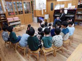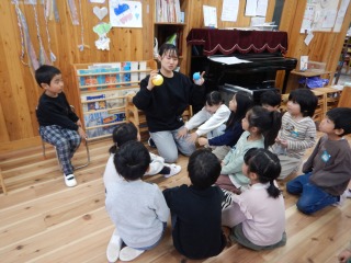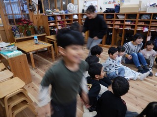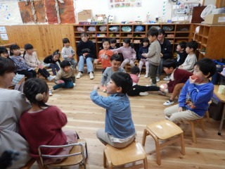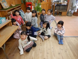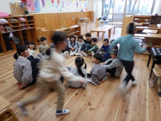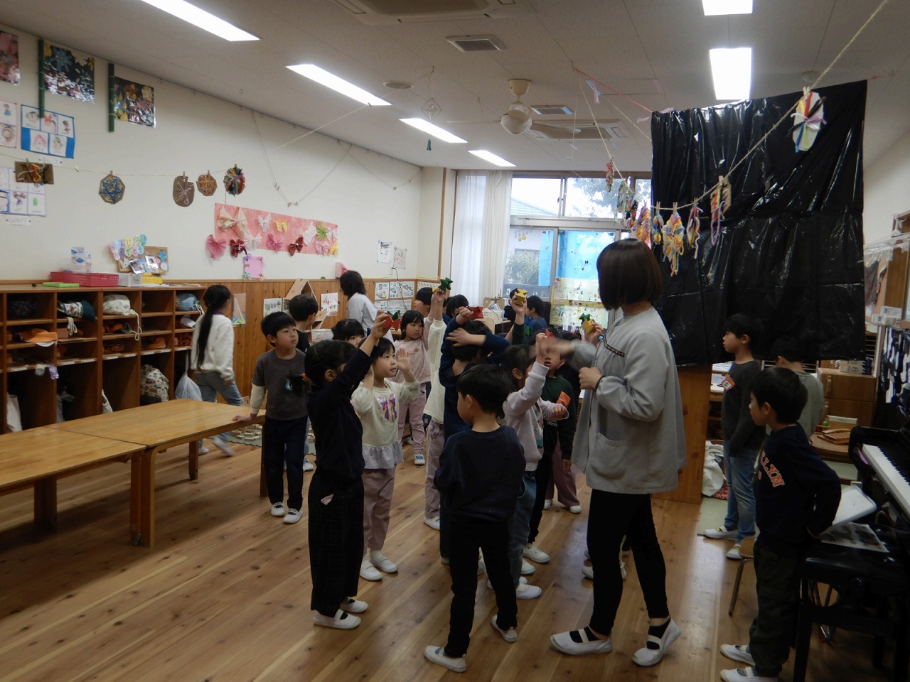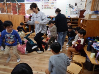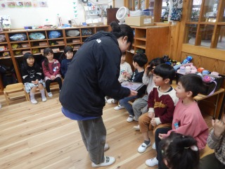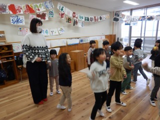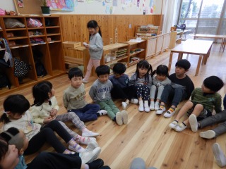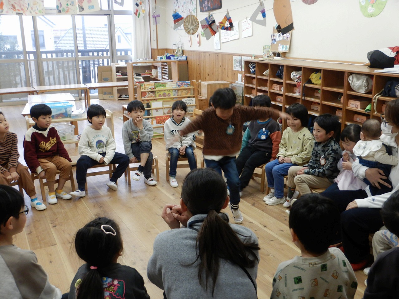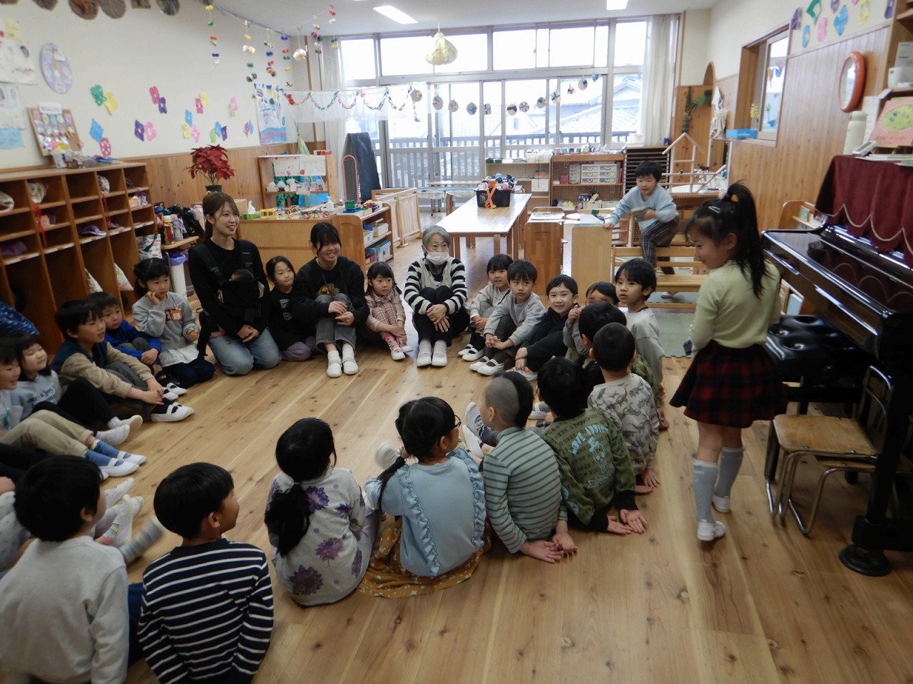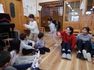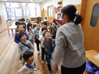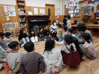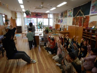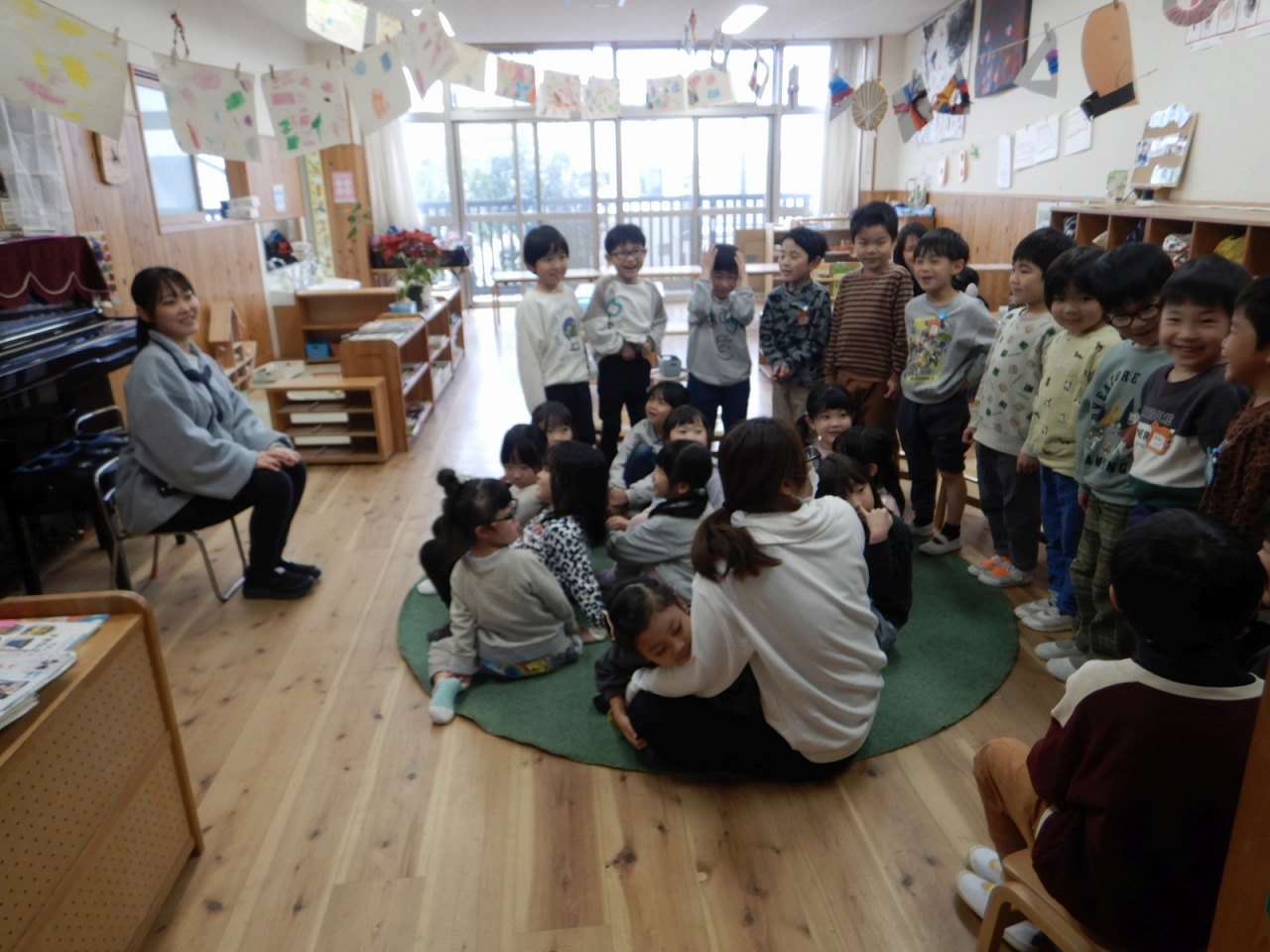 懐かしい保育者と一緒に、年少・年中だった頃を思い出したり、その時うたっていた歌をうたったり、集団あそびをしたりと楽しい時間を過ごすことができました。