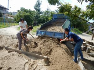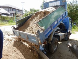 ということで、今回もトラックにて川砂を2台分入れてもらいました。