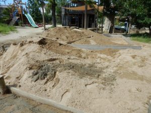 またやってきました…幼稚園の七不思議のひとつ(あと六つは何かわかりませんが…)、あんなに沢山あった砂はいったいどこへ…?